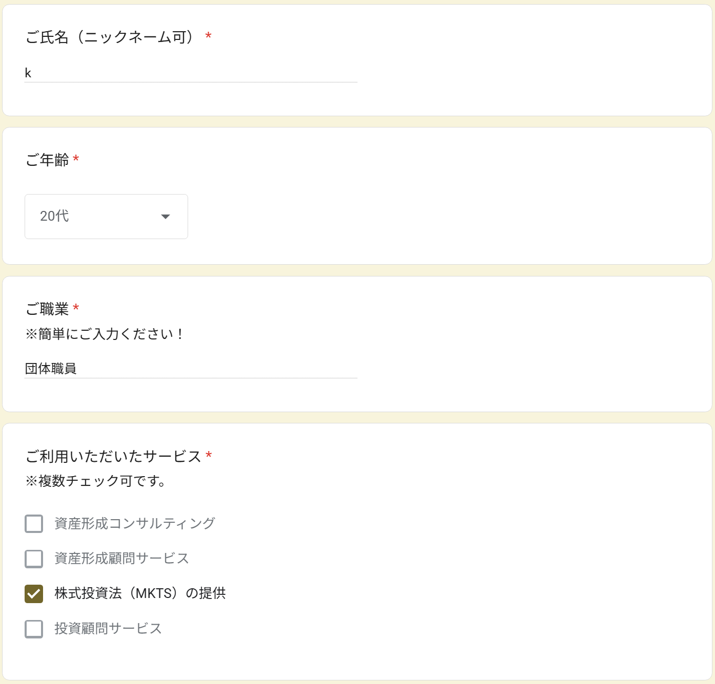 実際にご入力いただいたフォーム