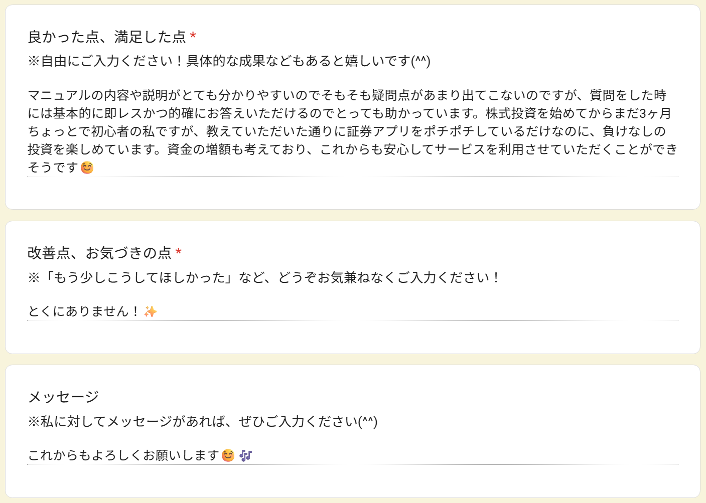 資金の増額も考えており、これからも安心してサービスを利用させていただくことができそうです☺️