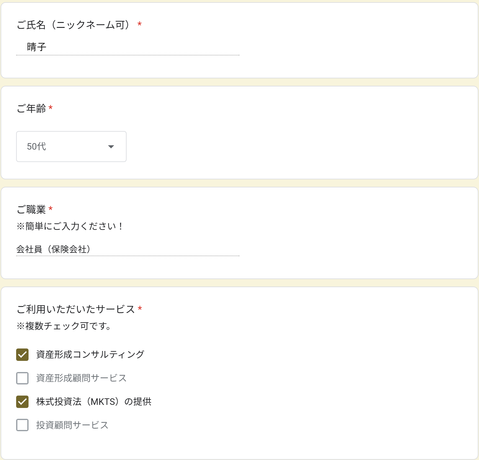 実際にご入力いただいたフォーム