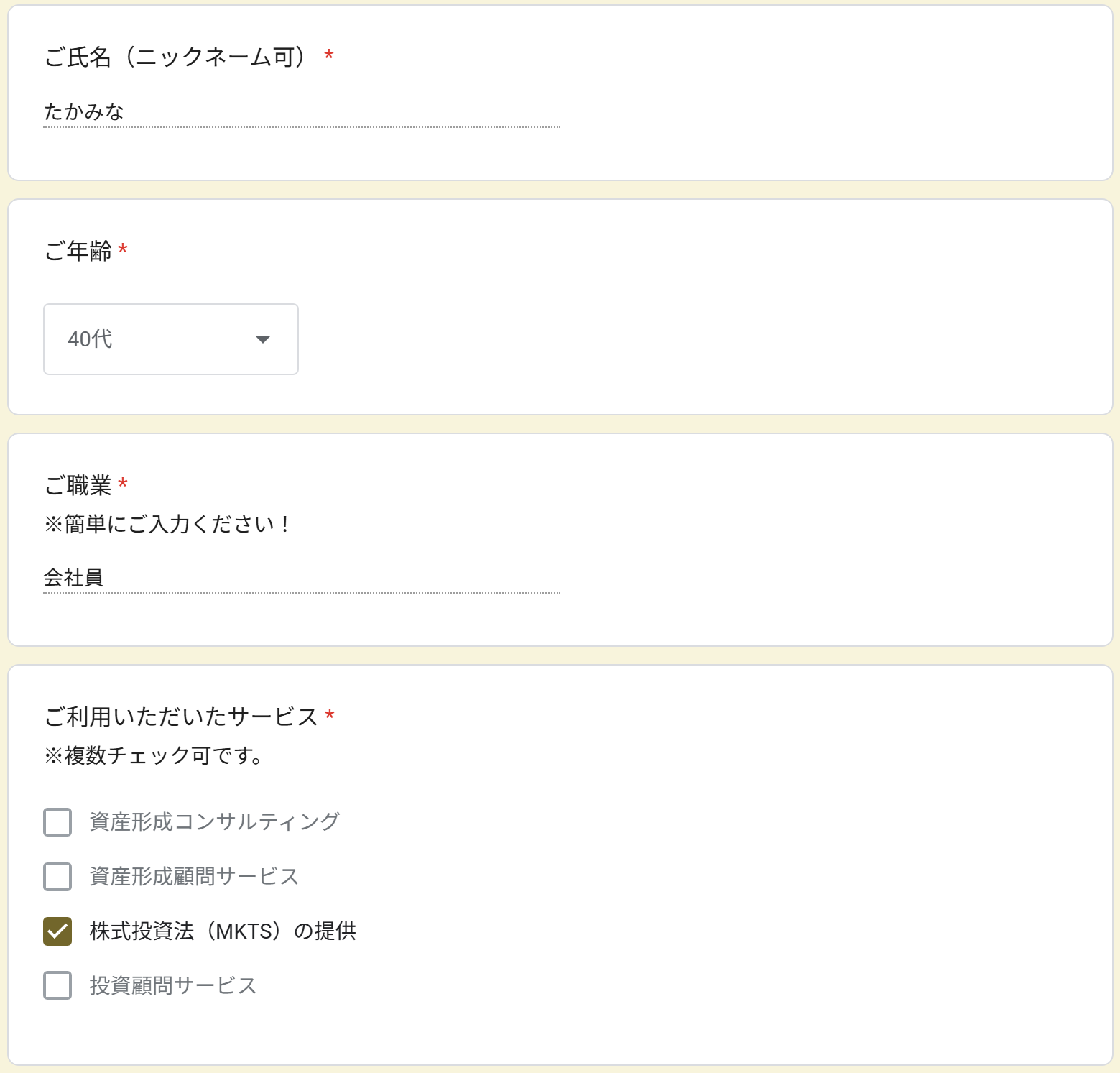 実際にご入力いただいたフォーム