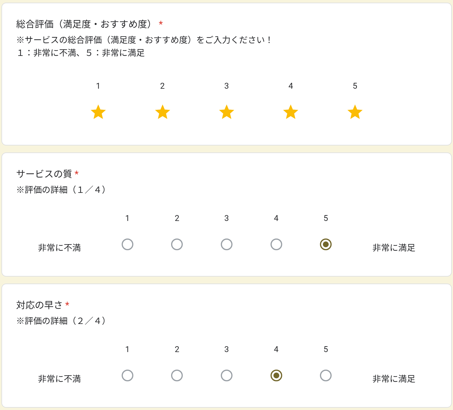 しいていえば、対応の早さとオススメの度合いを満点ではなく4にしました。